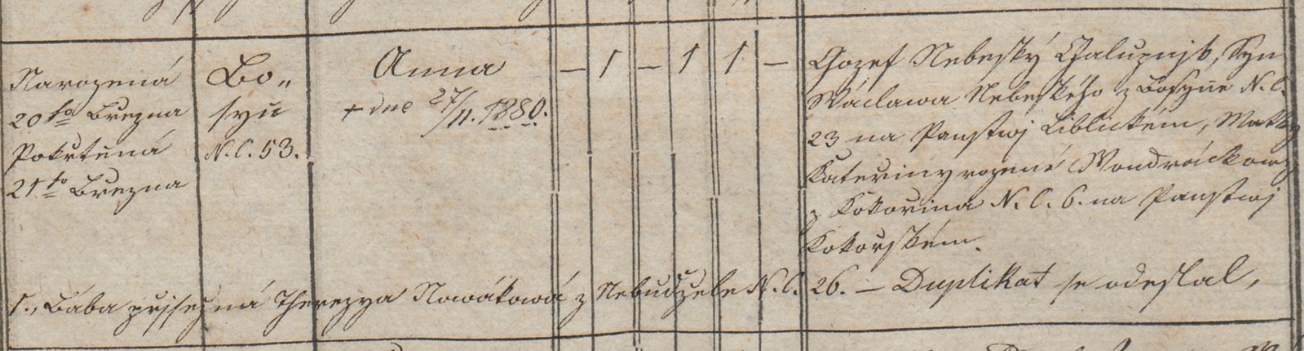 - 3. září 1832 syn Jan Nebeský, který zřejmě krátce po narození zemřel