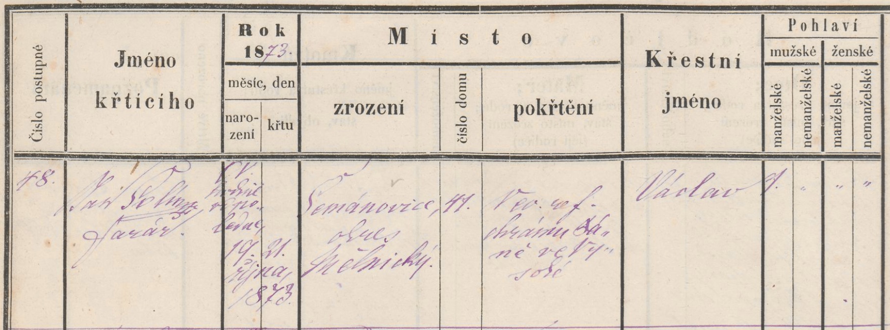 - 19. října 1873 syn Václav Nebeský